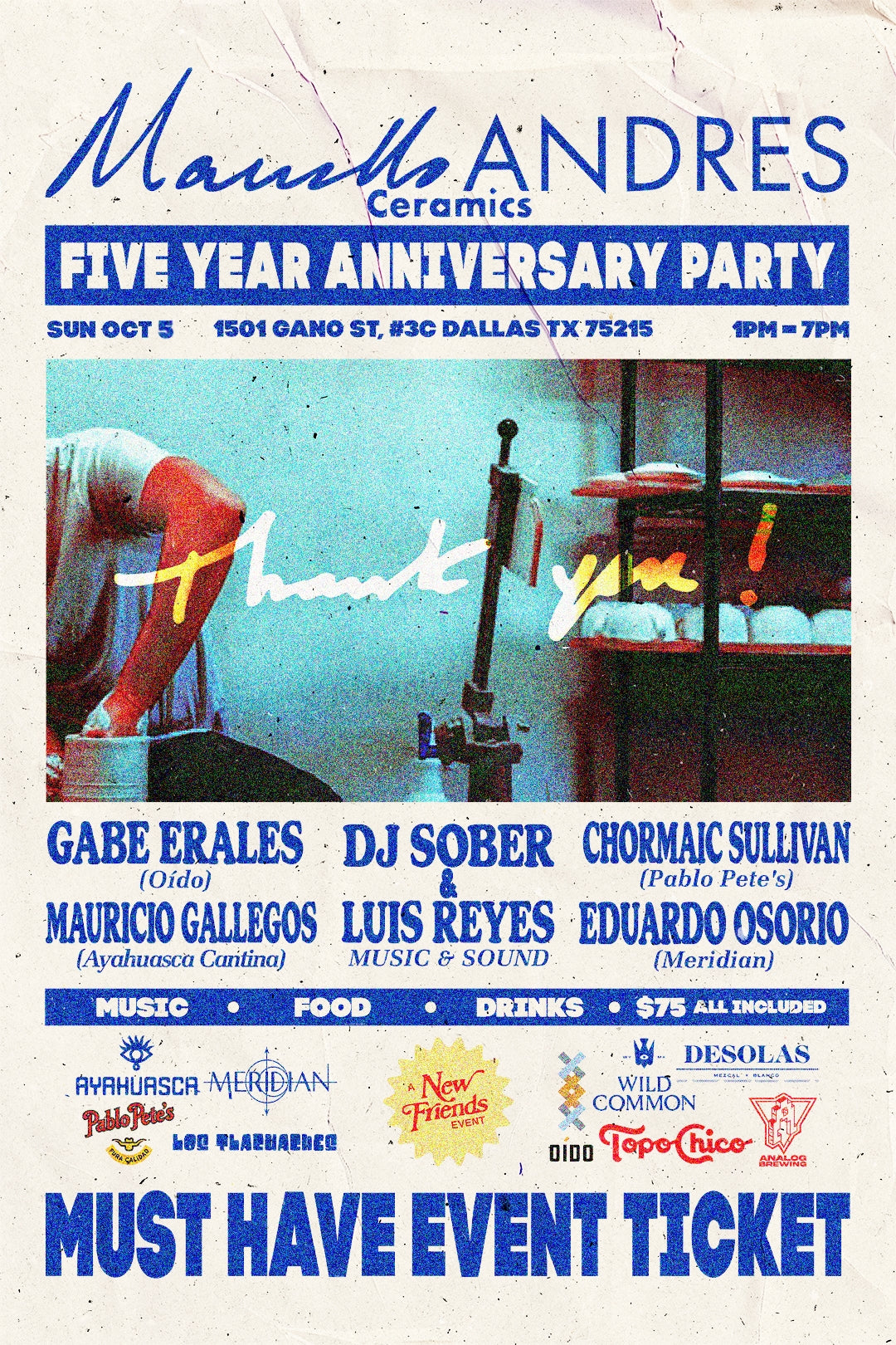 Marcello Andres Ceramics 5th Anniversary Party: Sun, Oct 5, 1-7PM