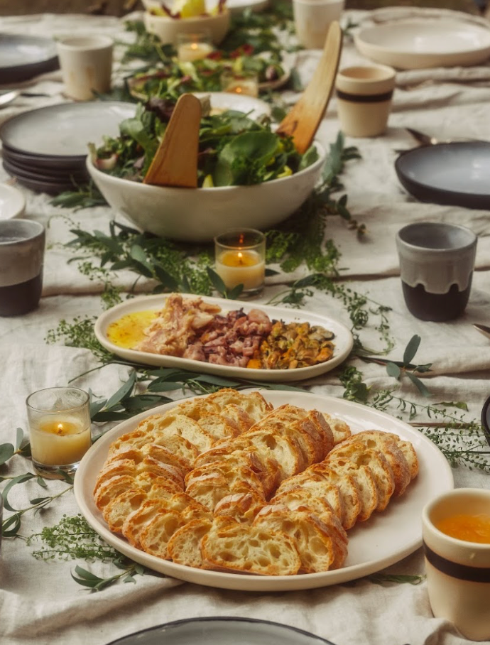 Our Cloud Moon Serving Trio is perfect set for hosts and chefs alike: durable for everyday dining, yet elegant for any special occasional meals and table settings. Its exposed, off-white clay body is smooth yet still reminiscent of the earth, while the glossy interior nods to the bright celestial elements of the sky.
