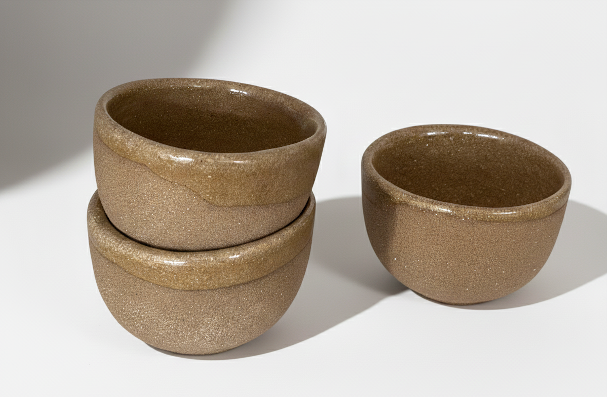 Originally commissioned for Norman’s (Duro Hospitality), this sake cup was the foundational piece for their sake program. It is crafted from locally sourced Texas stoneware, left in its natural tone and finished with a clear glaze to highlight the raw, organic grit of the local clay.