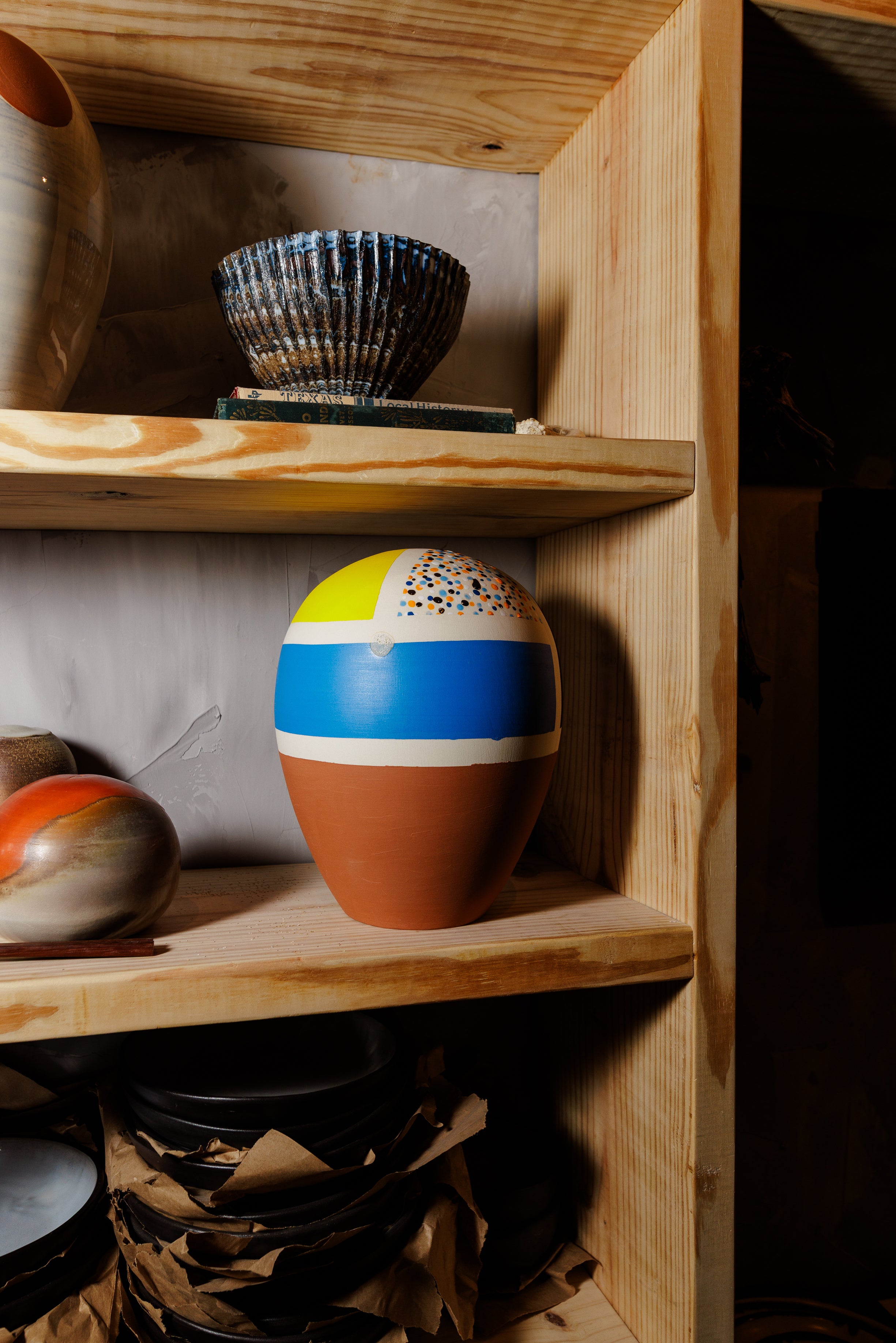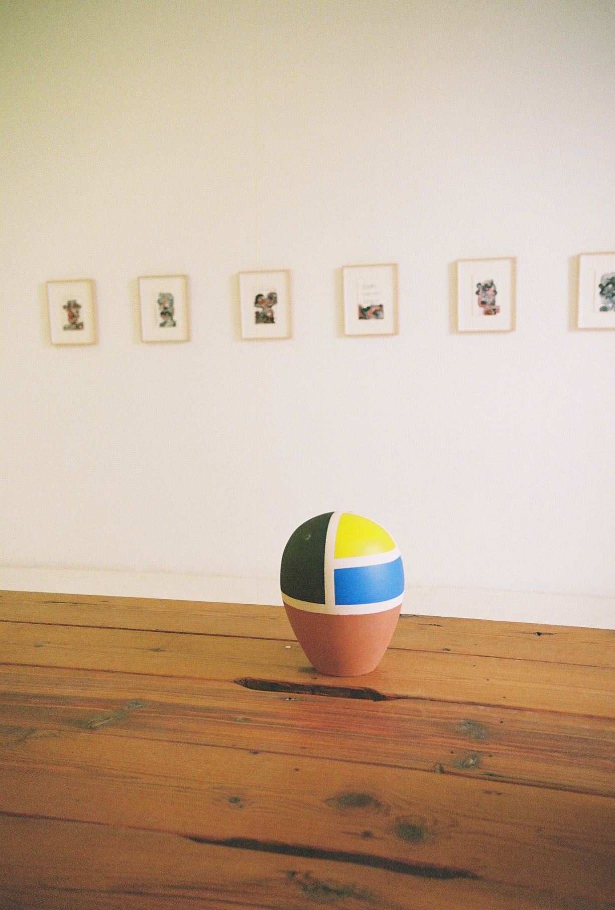 On October 10–12, 2025, ceramic artist Marcello Ortega debuted a new collection of large porcelain orbs which explore the tension of air and inflation in clay. He showed this new series of untitled work at his joint show, 'The Long Game' with fellow Dallas-based artist Kyle Steed at the Do Right Hall in Marfa, TX.